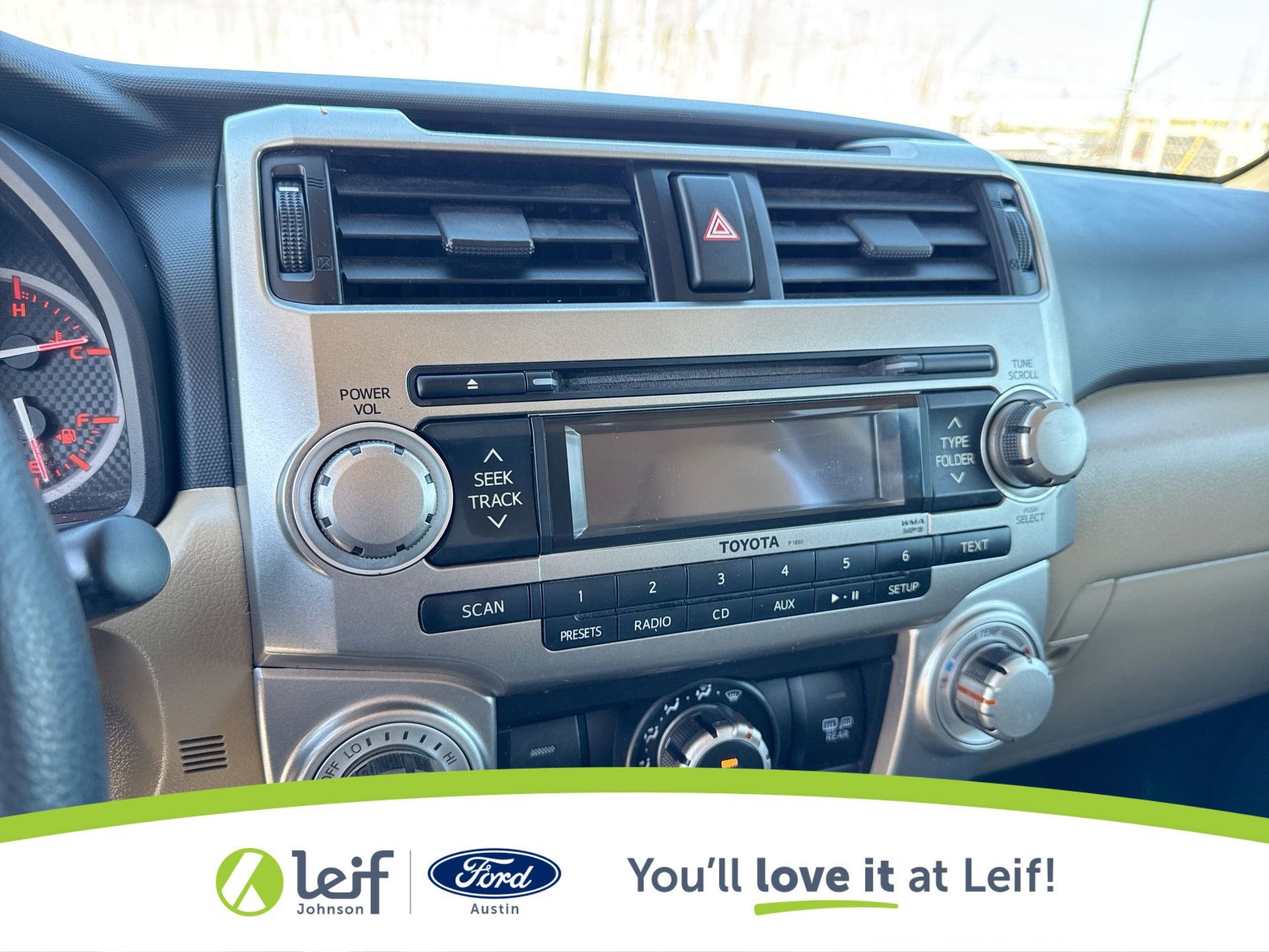 Clean CARFAX. 2011 Toyota 4Runner Black SR5 V6 4WD 5-Speed Automatic with Overdrive **CLEAN CARFAX**, **LOCAL TRADE**, **4WD**, 4WD, Sand Beige w/Low Fabric Seat Trim or Sport Fabric Seat Trim or Leather Seat Trim, ABS brakes, Alloy wheels, Compass, Convenience Package, Electronic Stability Control, Heated door mirrors, Illuminated entry, Low tire pressure warning, Remote keyless entry, Traction control. 17/22 City/Highway MPG 4.0L V6 SMPI DOHC Get a Pre-Loved Pre-Owned vehicle from Leif Johnson Ford! Come experience the transparent sales process and haggle free shopping here at Leif Johnson Ford. We have One of the largest pre-owned vehicles selection in the Austin area and they are all PRICED TO SELL. At Leif Johnson Ford, our commitment to our customers produces One of the most valuable assets and that’s trust! We know you can’t buy trust. You have to earn it! People have come to know that they can trust Leif Johnson Ford for the right selection, the right price and the right service . Ask us about purchasing this vehicle without ever visiting the dealership! Call us today at 512-706-6270 or stop by and see us at 501 East Koenig lane . Ask us about 7 day money back promise!! 501 E Koenig Ln Austin TX 512-706-6270. CALL OR COME BY TODAY. Call 512-706-6270 with any questions about this quality pre-owned vehicle. See it today at Leif Johnson Ford Superstore located at Airport and Koenig Lane. 512-706-6270.