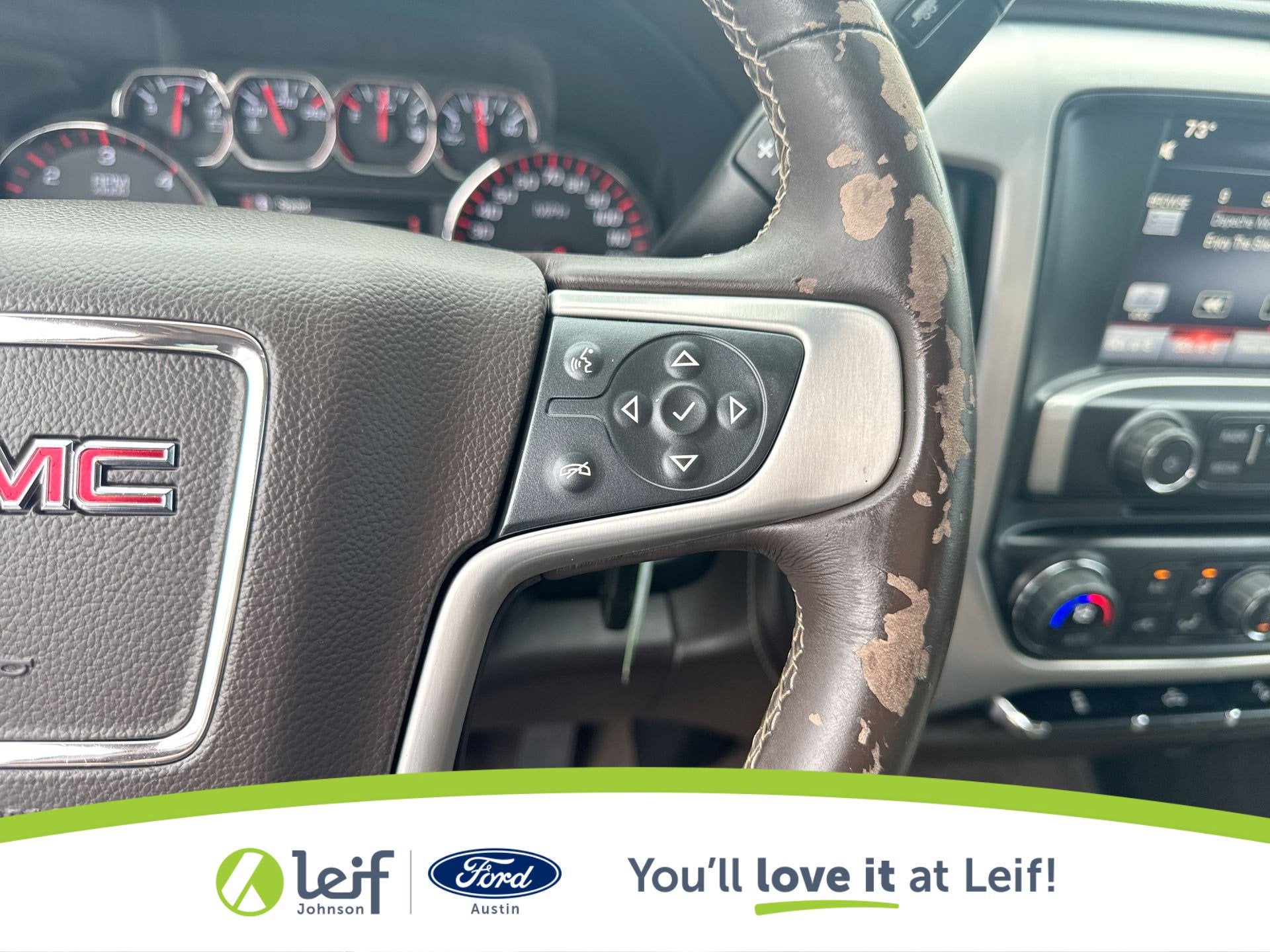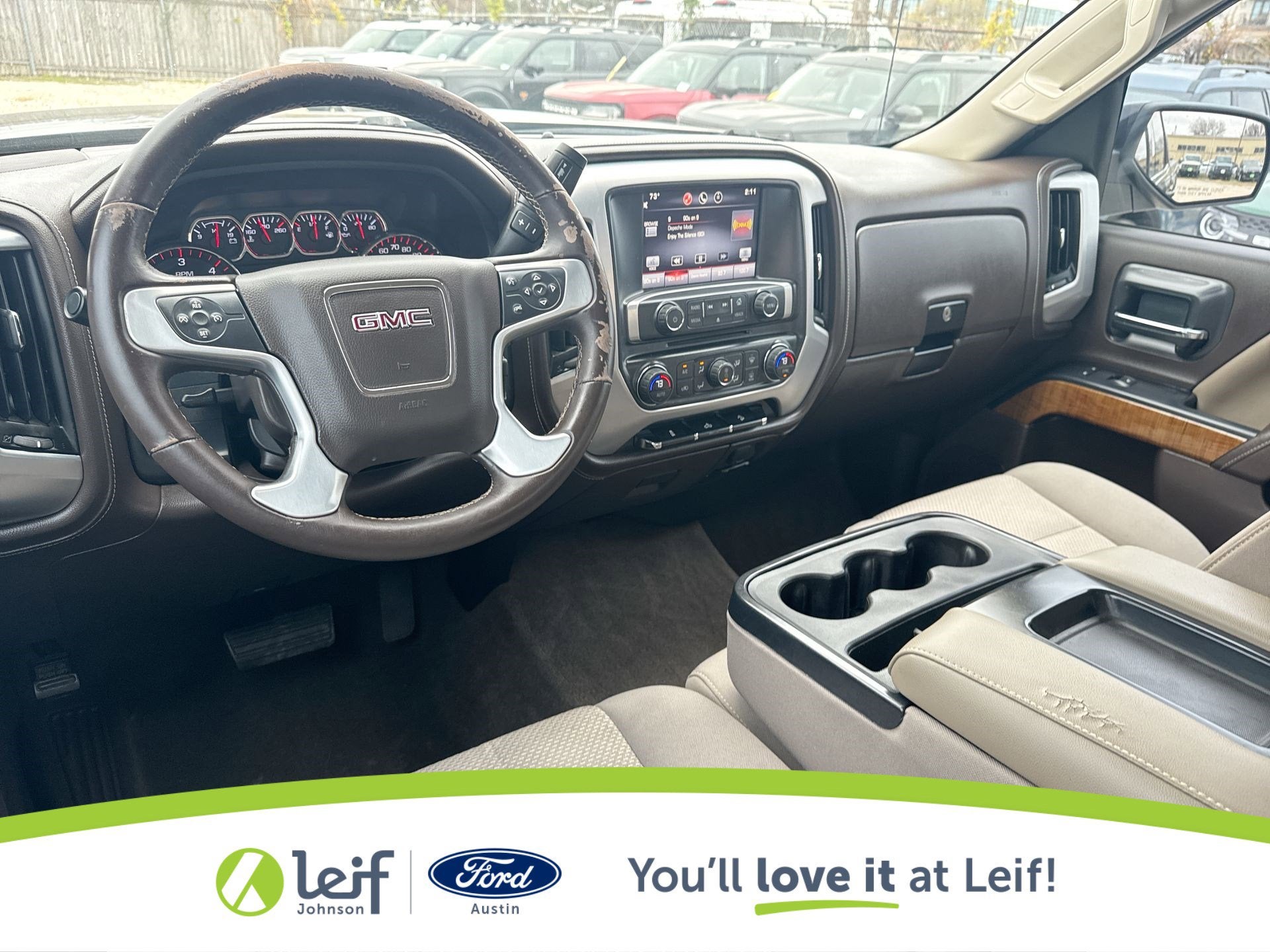 CARFAX One-Owner. 2015 GMC Sierra 1500 Onyx Black SLE 4WD 6-Speed Automatic Electronic with Overdrive 6-Speed Automatic Electronic with Overdrive, 4WD, Cocoa/Dune Cloth. 16/22 City/Highway MPG EcoTec3 5.3L V8 Get a Pre-Loved Pre-Owned vehicle from Leif Johnson Ford! Come experience the transparent sales process and haggle free shopping here at Leif Johnson Ford. We have One of the largest pre-owned vehicles selection in the Austin area and they are all PRICED TO SELL. At Leif Johnson Ford, our commitment to our customers produces One of the most valuable assets and that’s trust! We know you can’t buy trust. You have to earn it! People have come to know that they can trust Leif Johnson Ford for the right selection, the right price and the right service . Ask us about purchasing this vehicle without ever visiting the dealership! Call us today at 512-706-6270 or stop by and see us at 501 East Koenig lane . Ask us about 7 day money back promise!! 501 E Koenig Ln Austin TX 512-706-6270. CALL OR COME BY TODAY. Call 512-706-6270 with any questions about this quality pre-owned vehicle. See it today at Leif Johnson Ford Superstore located at Airport and Koenig Lane. 512-706-6270.