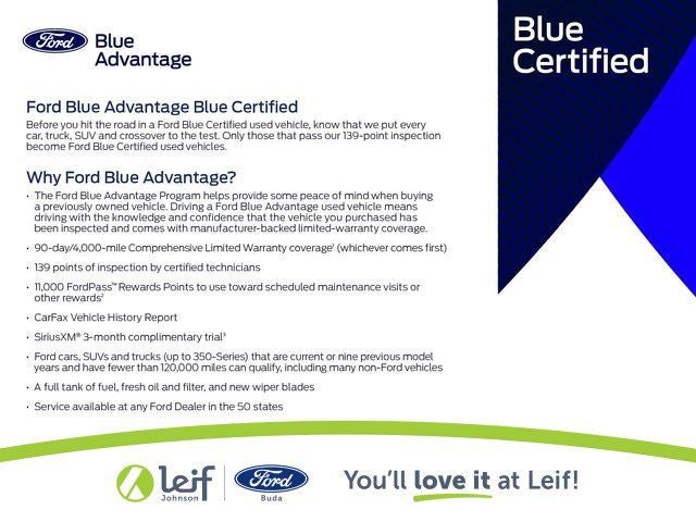 ✅ Peace of Mind Guarantee – Shop with confidence! Enjoy a 7-day return policy (14 days on Ford Blue Advantage Certified vehicles) plus warranty coverage you can count on: Gold (12 months/12,000 miles) or Blue (4 months/4,000 miles). 🔧 Quality You Can Trust – Every vehicle is fully reconditioned by certified technicians and backed by a 2-year parts & service warranty. 🚗 Dedicated Delivery Experience – Our specialists ensure you know your vehicle inside and out before you drive off. 💬 Real Deals. Real People. Really Easy. – No hidden fees, no surprises — just real prices and transparent financing. 🏡 Convenience Comes First – Enjoy home test drives and remote buying options across the Buda and Austin areas. 🛠️ After-Sales Relationship – Factory-trained technicians, genuine Ford parts, and continued care long after your purchase. 💙 You’ll Love It at Leif.