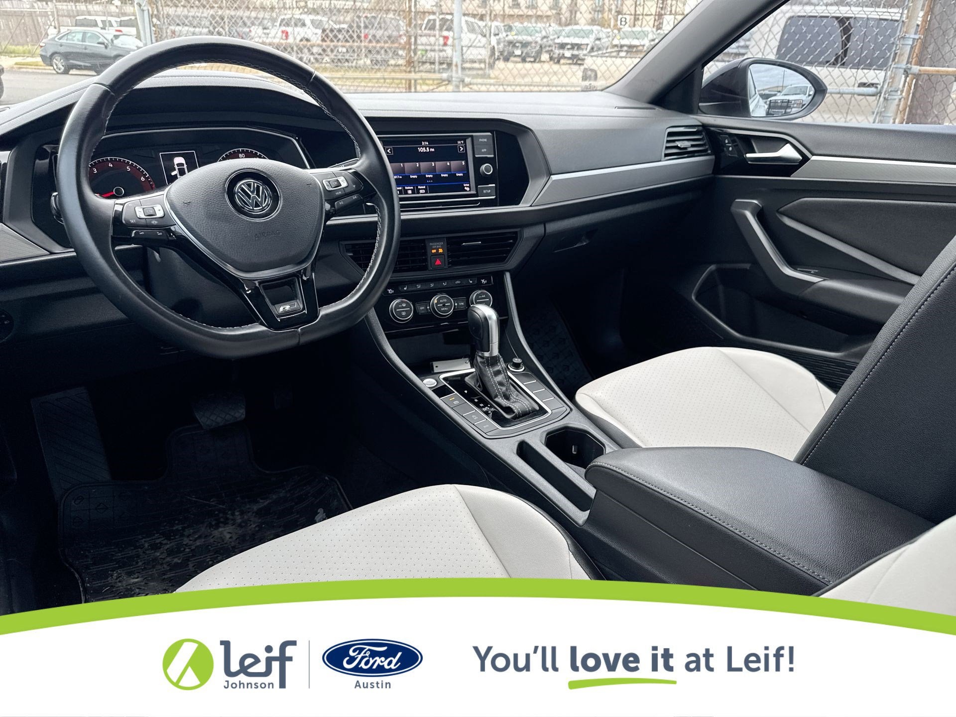 CARFAX One-Owner. Clean CARFAX. 2019 Volkswagen Jetta Pure White R-Line FWD 8-Speed Automatic with Tiptronic Storm Gray/Black Premium Synthetic. 30/40 City/Highway MPG 30/40 City/Highway MPG 1.4L TSI Get a Pre-Loved Pre-Owned vehicle from Leif Johnson Ford! Come experience the transparent sales process and haggle free shopping here at Leif Johnson Ford. We have One of the largest pre-owned vehicles selection in the Austin area and they are all PRICED TO SELL. At Leif Johnson Ford, our commitment to our customers produces One of the most valuable assets and that’s trust! We know you can’t buy trust. You have to earn it! People have come to know that they can trust Leif Johnson Ford for the right selection, the right price and the right service . Ask us about purchasing this vehicle without ever visiting the dealership! Call us today at 512-706-6270 or stop by and see us at 501 East Koenig lane . Ask us about 7 day money back promise!! 501 E Koenig Ln Austin TX 512-706-6270. CALL OR COME BY TODAY. Call 512-706-6270 with any questions about this quality pre-owned vehicle. See it today at Leif Johnson Ford Superstore located at Airport and Koenig Lane. 512-706-6270.