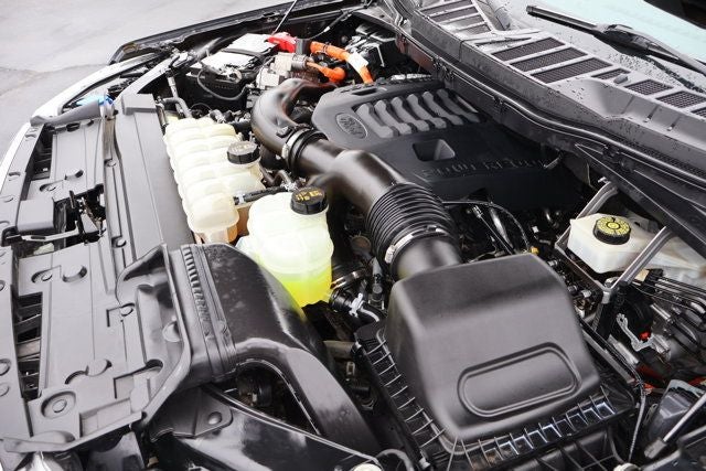 PowerBoost Hybrid King Ranch with the 3.5L Full-Hybrid V6 -- 430 hp, available Pro Power Onboard generator, and the best combined fuel economy of any full-size pickup. Quartz Metallic over Java leather with the King Ranch's signature saddle-stitched interior and real wood trim. SuperCrew 4WD loaded with B&O Play premium audio, Co-Pilot 360 Assist, navigation, power running boards, heated and cooled front seats, panoramic moonroof, adaptive steering, and the FX4 Off-Road Package. BoxLink cargo management, LED box lighting, and a power tailgate round out the bed. This powertrain is the one truck buyers specifically search for -- don't wait. Call or text 512-281-3673.**ALLOY WHEELS**, **APPLE CARPLAY**, **CERTIFIED**, **CLEAN AUTO CHECK**, **FULLY DETAILED**, **FULLY INSPECTED**, **HEATED LEATHER SEATS**, **HYBRID**, **LEATHER**, **LIKE NEW**, **NAVIGATION**, **NO ACCIDENT HISTORY**, **RECENT OIL CHANGE**, **REMOTE KEYLESS ENTRY READY**, **SUNROOF/MOONROOF**, **TOW PREP PACKAGE**.