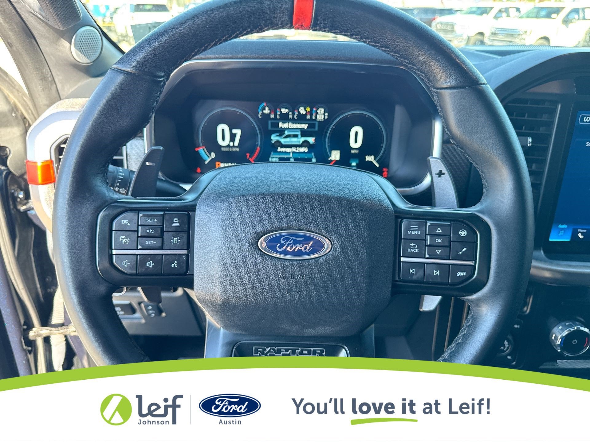 Clean CARFAX. 2023 Ford F-150 Blue Metallic Raptor 4WD 10-Speed Automatic **CLEAN CARFAX**, **LOCAL TRADE**, **AWD**, **MOONROOF**, 4WD, Equipment Group 801A Standard, Moonroof & Tailgate, Power Tailgate, Raptor Carbon Fiber Package, Raptor Exterior Graphics Package, Twin Panel Moonroof. 14/16 City/Highway MPG 3.5L V6 EcoBoost Get a Pre-Loved Pre-Owned vehicle from Leif Johnson Ford! Come experience the transparent sales process and haggle free shopping here at Leif Johnson Ford. We have One of the largest pre-owned vehicles selection in the Austin area and they are all PRICED TO SELL. At Leif Johnson Ford, our commitment to our customers produces One of the most valuable assets and that’s trust! We know you can’t buy trust. You have to earn it! People have come to know that they can trust Leif Johnson Ford for the right selection, the right price and the right service . Ask us about purchasing this vehicle without ever visiting the dealership! Call us today at 512-706-6270 or stop by and see us at 501 East Koenig lane . Ask us about 7 day money back promise!! 501 E Koenig Ln Austin TX 512-706-6270. CALL OR COME BY TODAY. Call 512-706-6270 with any questions about this quality pre-owned vehicle. See it today at Leif Johnson Ford Superstore located at Airport and Koenig Lane. 512-706-6270.